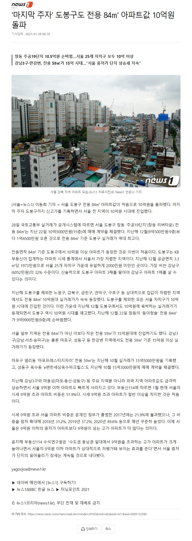 '¸¶Áö¸· ÁÖÀÚ' µµºÀ±¸µµ Àü¿ë 84§³ ¾ÆÆÄÆ®°ª 10¾ï¿ø µ¹ÆÄ