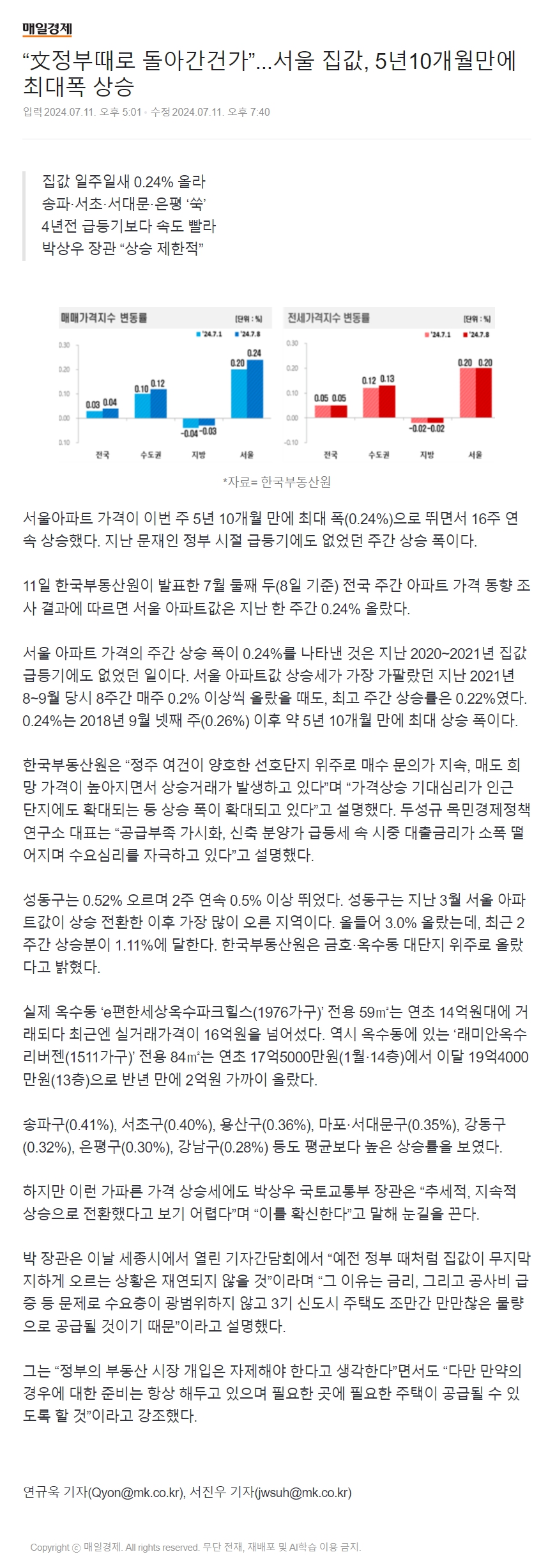 ¡°ÙþÁ¤ºÎ¶§·Î µ¹¾Æ°£°Ç°¡¡±...¼¿ï Áý°ª, 5³â10°³¿ù¸¸¿¡ ÃÖ´ëÆø »ó½Â