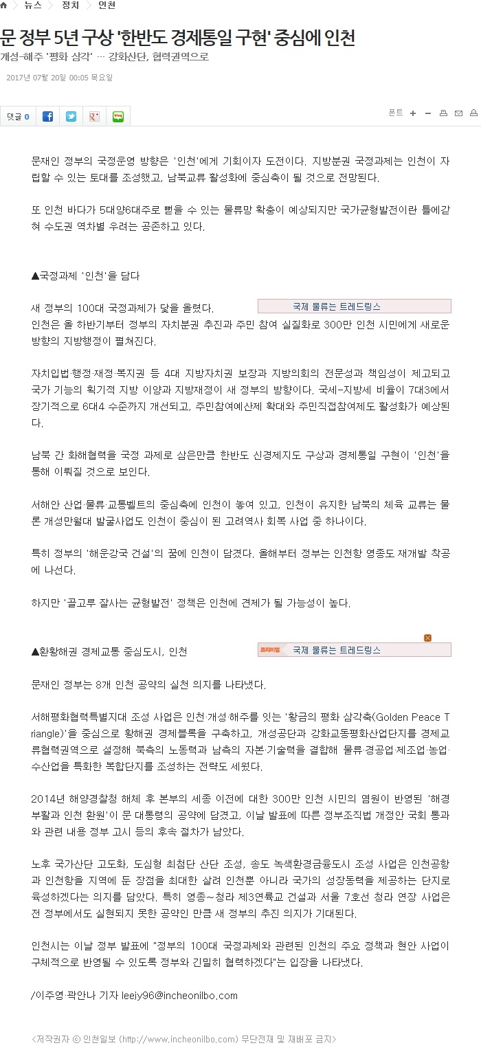 ¹® Á¤ºÎ 5³â ±¸»ó 'Çѹݵµ °æÁ¦ÅëÀÏ ±¸Çö' Á߽ɿ¡ ÀÎõ