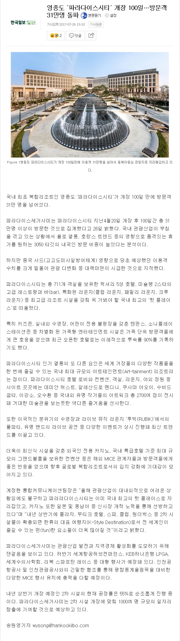 ¿µÁ¾µµ 'ÆÄ¶ó´ÙÀ̽º½ÃƼ' °³Àå 100ÀÏ..¹æ¹®°´ 31¸¸¸í µ¹ÆÄ